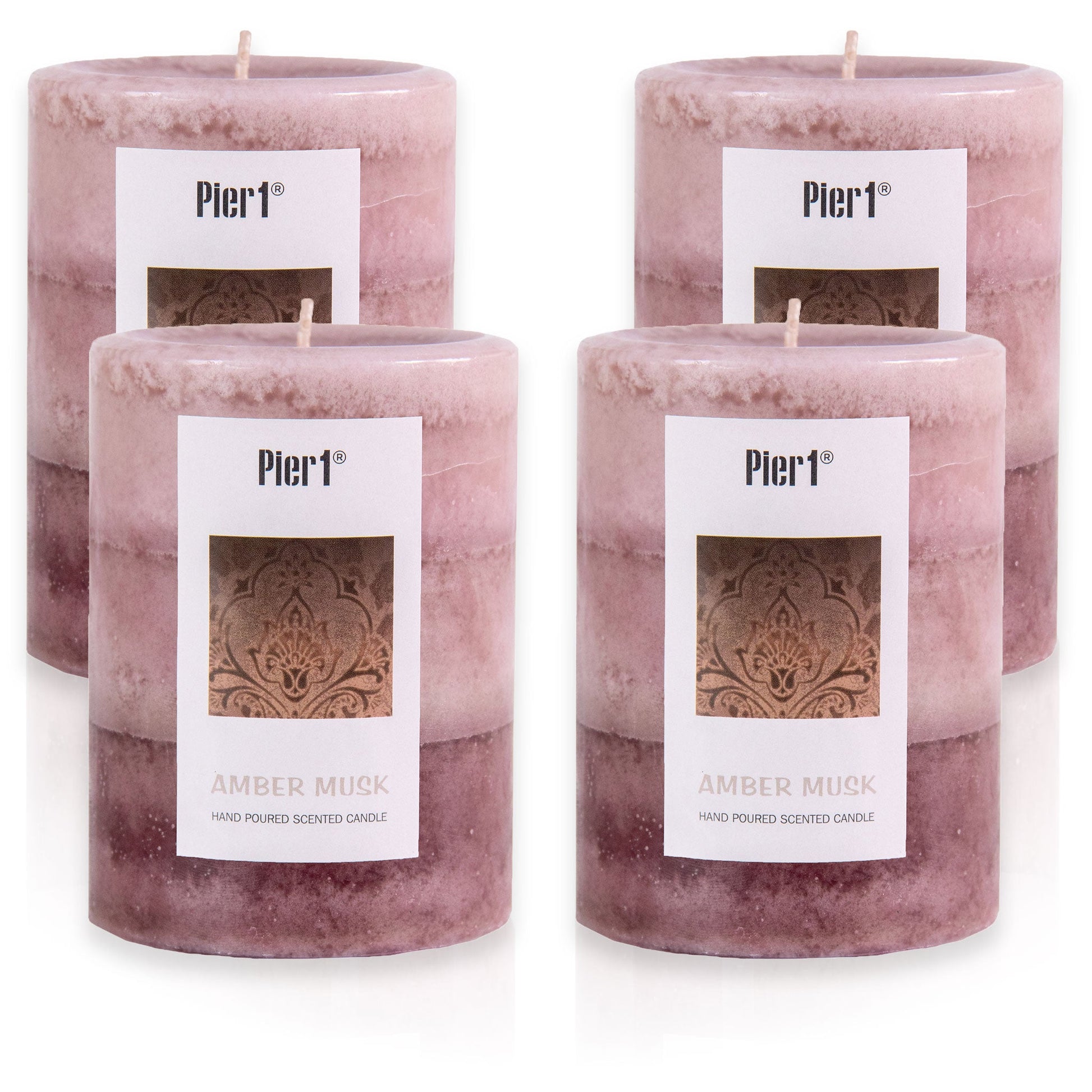 Pier 1 Amber Musk 3x4 Layered Set of 4 Pillar Candles