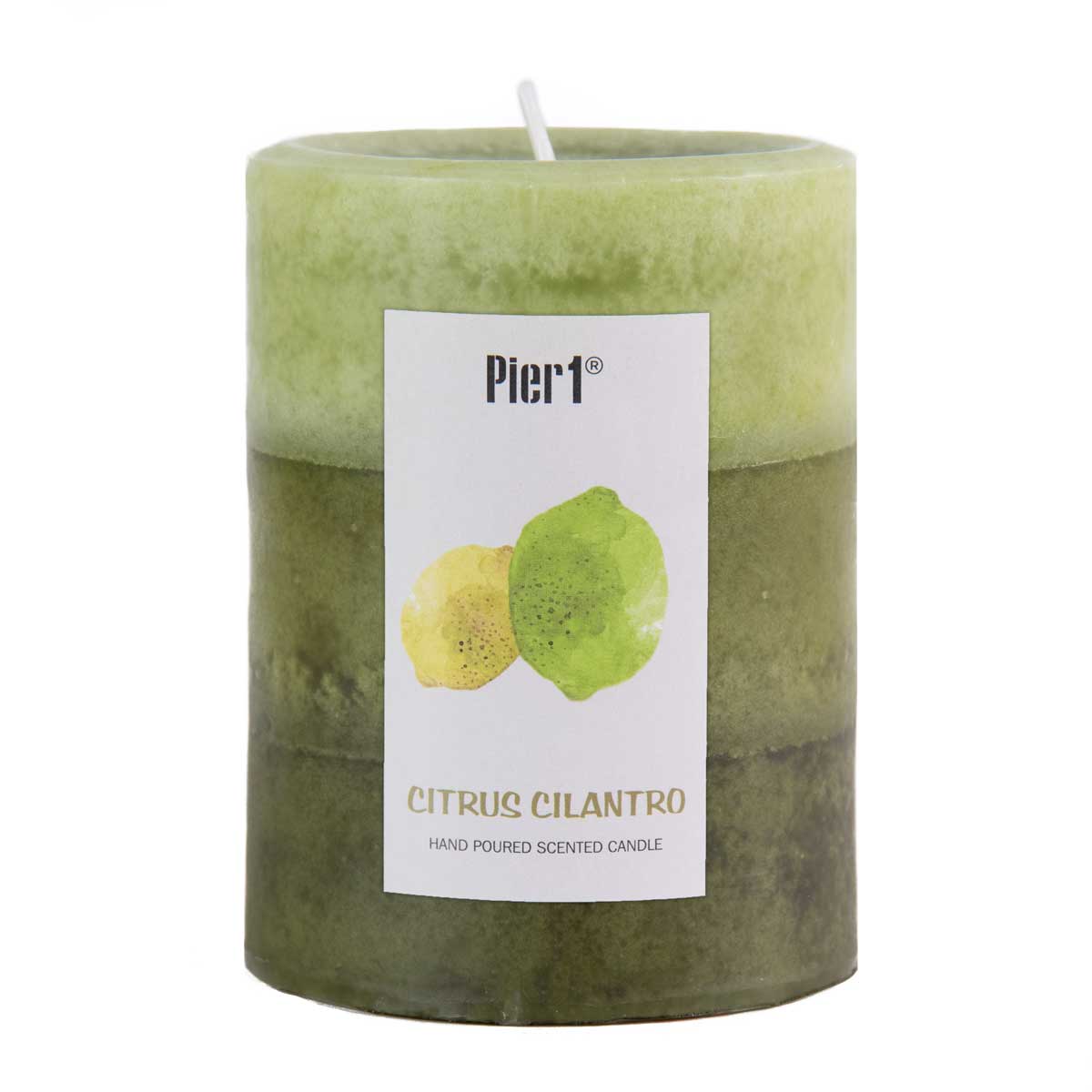 Pier 1 Citrus Cilantro Layered 3x4 Pillar Candle