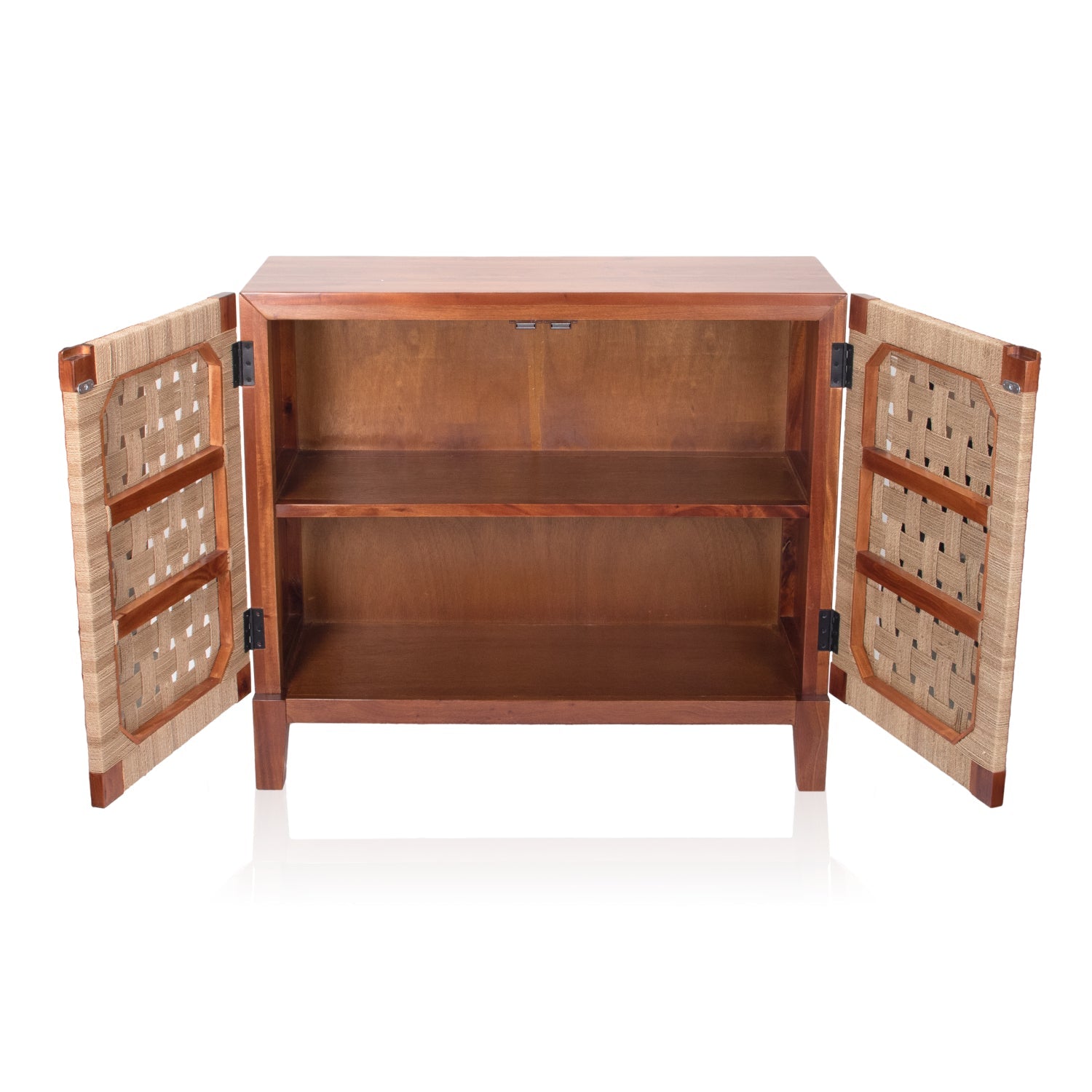 The Diego cabinet perfectly pairs solid mahogany with high-quality woven seagrass in this beautiful accent piece. The 2 doors open to reveal ample storage space with a fixed shelf.