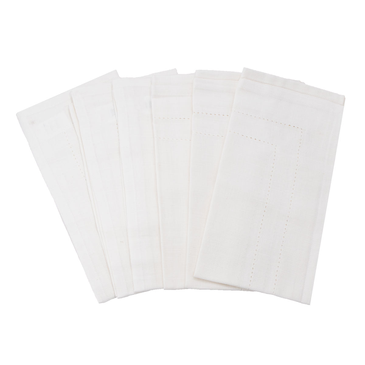 These elegant and versatile hemstitch napkins are perfect for any occasion. Pair them with our hemstitch placemats for the perfect table setting! Set includes 6 napkins. Machine washable, cool iron as needed.