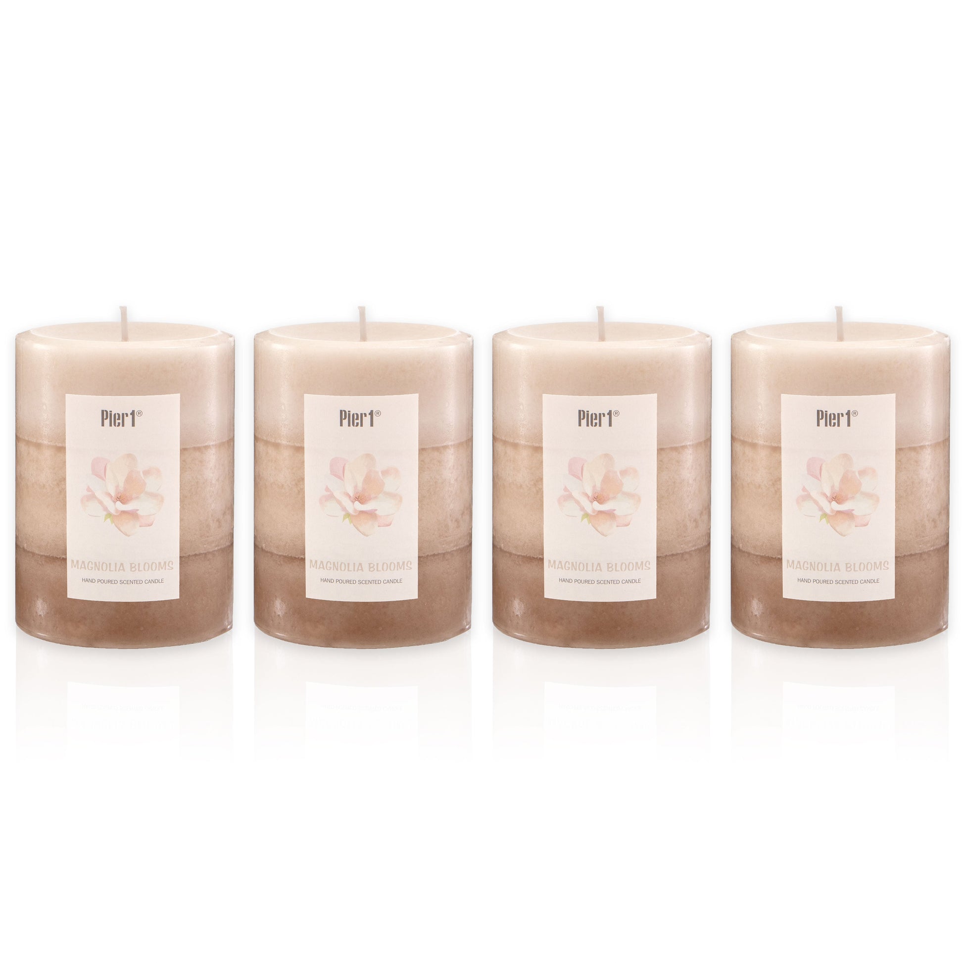 Pier 1 Magnolia Blooms 3X4 Layered Set of 4 Pillar Candles