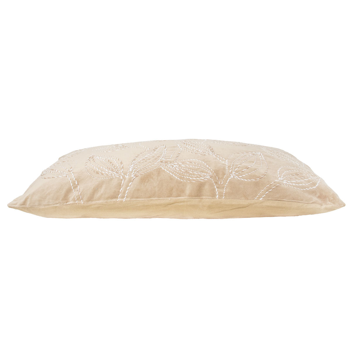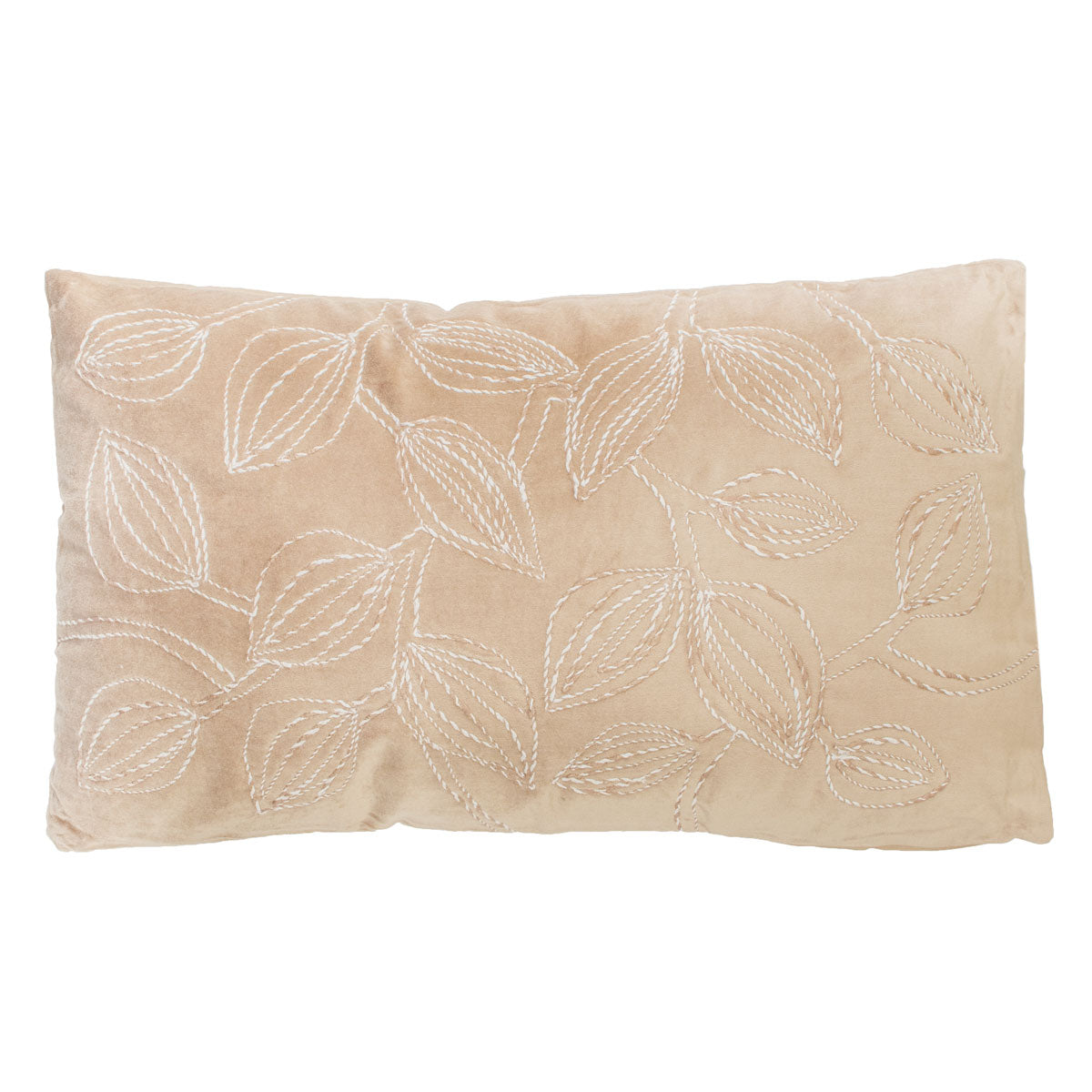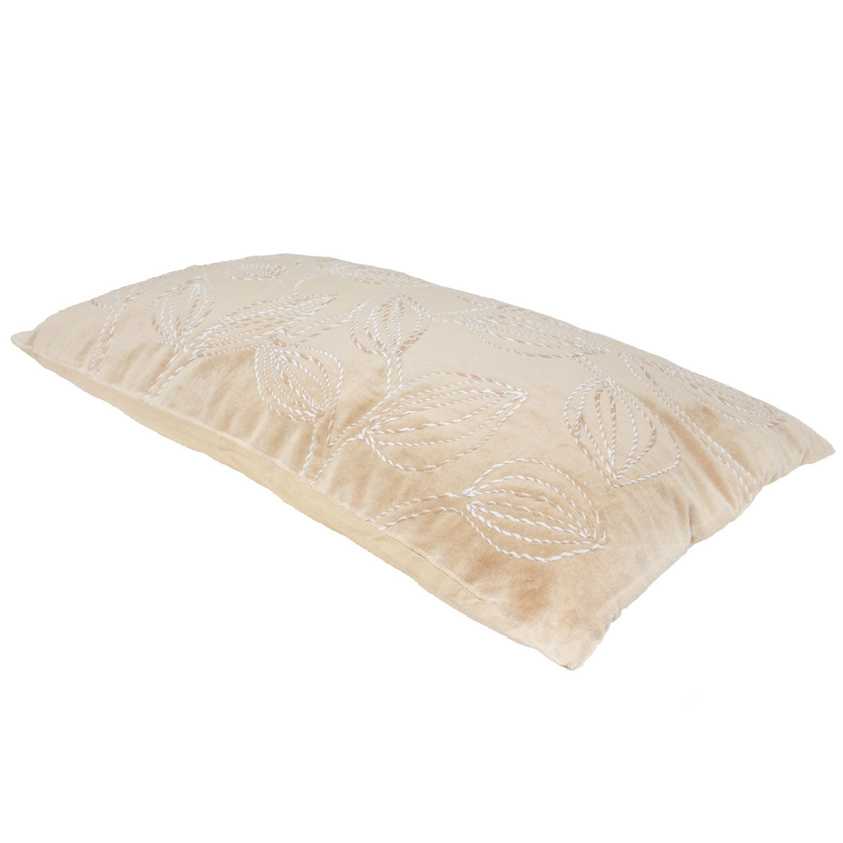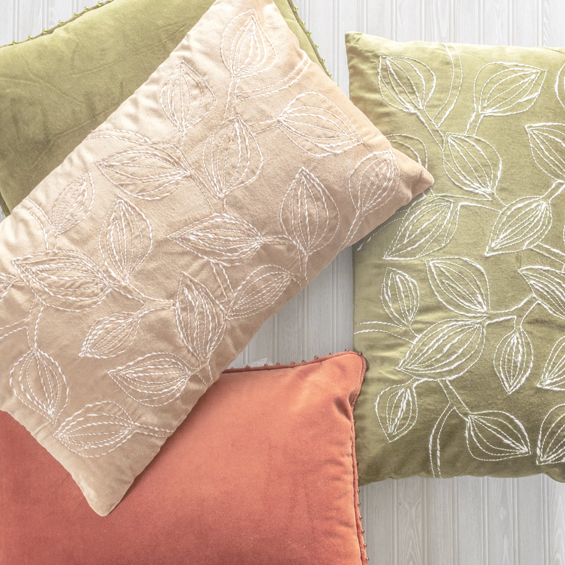 Pier 1 Velvet Embroidered Leaf Lumbar Pillow Natural