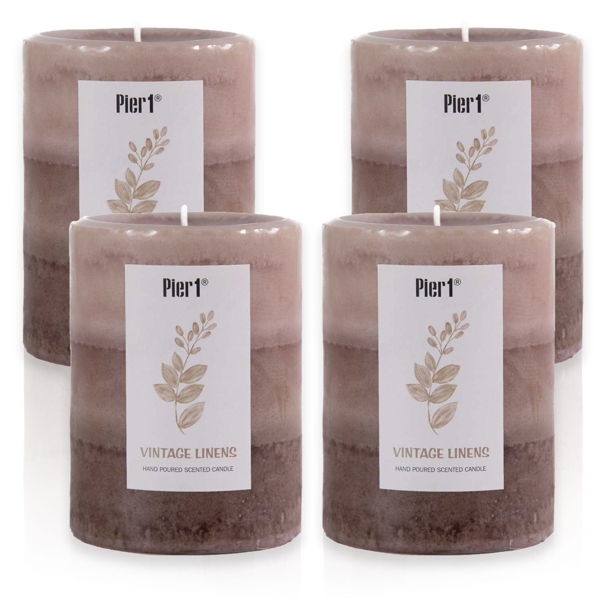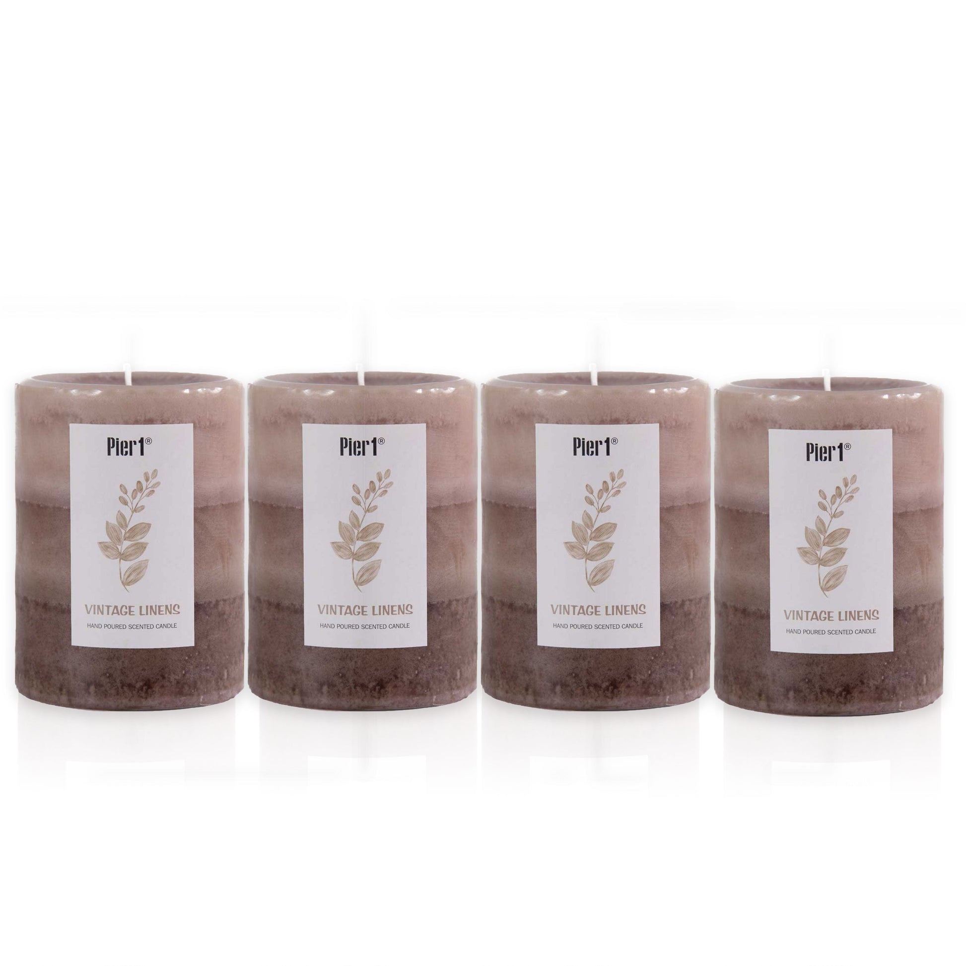 Pier 1 Vintage Linens Layered 3x4 Set of 4 Pillar Candles